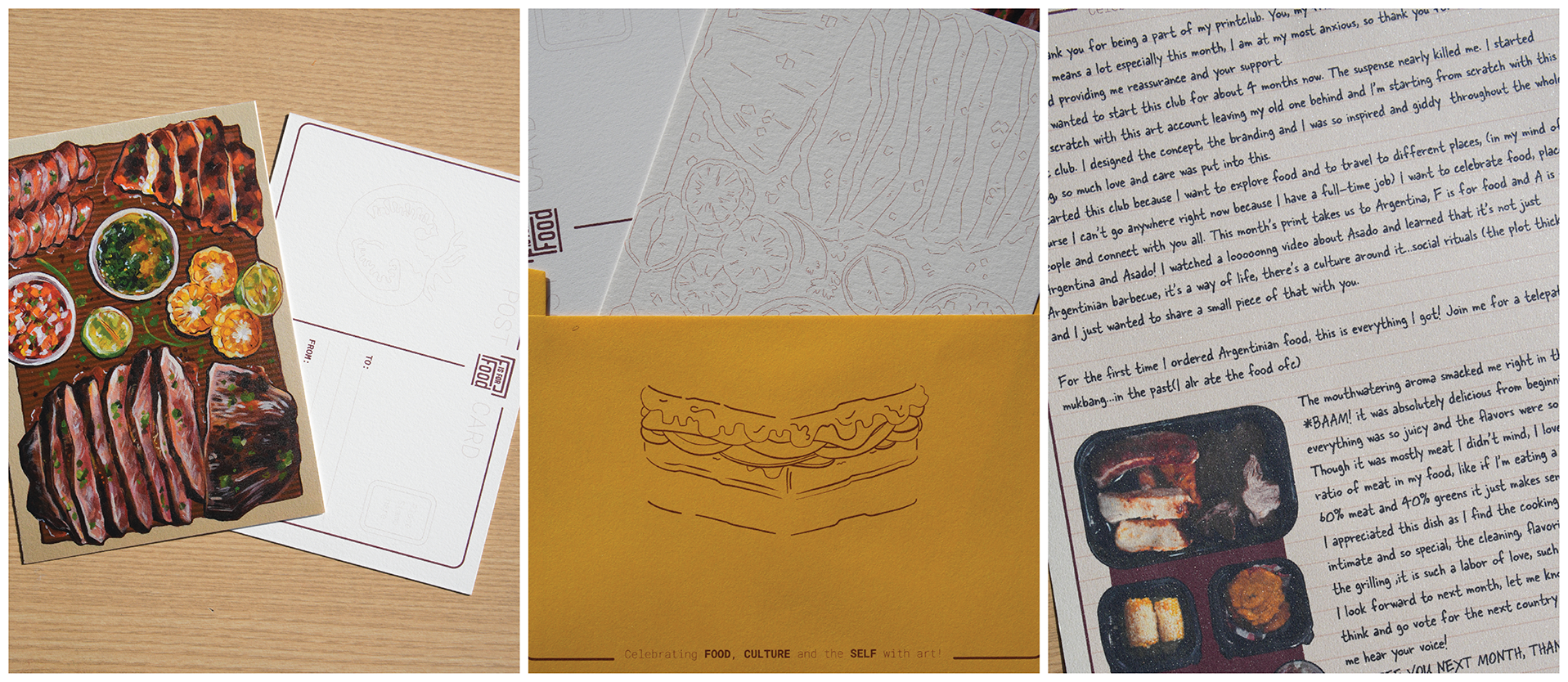 Thank you for visiting, I’m so excited to finally share something I’ve been dreaming up for a few months, my print club or snail mail club! If you’ve ever wished you could bring a little more color, joy, and food-inspired fun into your home (or your mailbox), this is for you. Every month, I create a hand-signed, 5x7" fine art print along with some other goodies and send it to you.